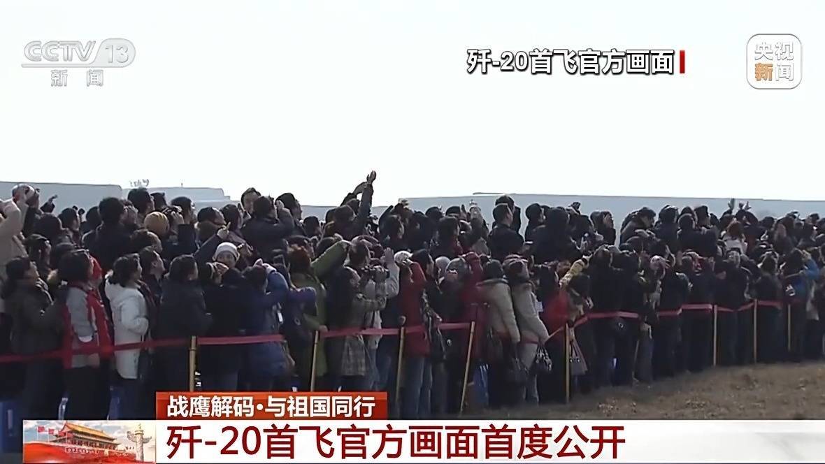 r2011年1月11日下午,歼-20技术验证机从成都温江机场一跃而起,跑道一侧的研制人员欢呼呐喊,目送这架凝聚心血的战鹰飞向蓝天。